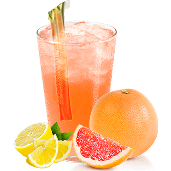 The pink grapefruit comes in with a strong,, tart sweetness. It plays with the slight bitter aspects of the rhubarb. The rhubarb fills in the middle to balance out this refreshing recipe!
